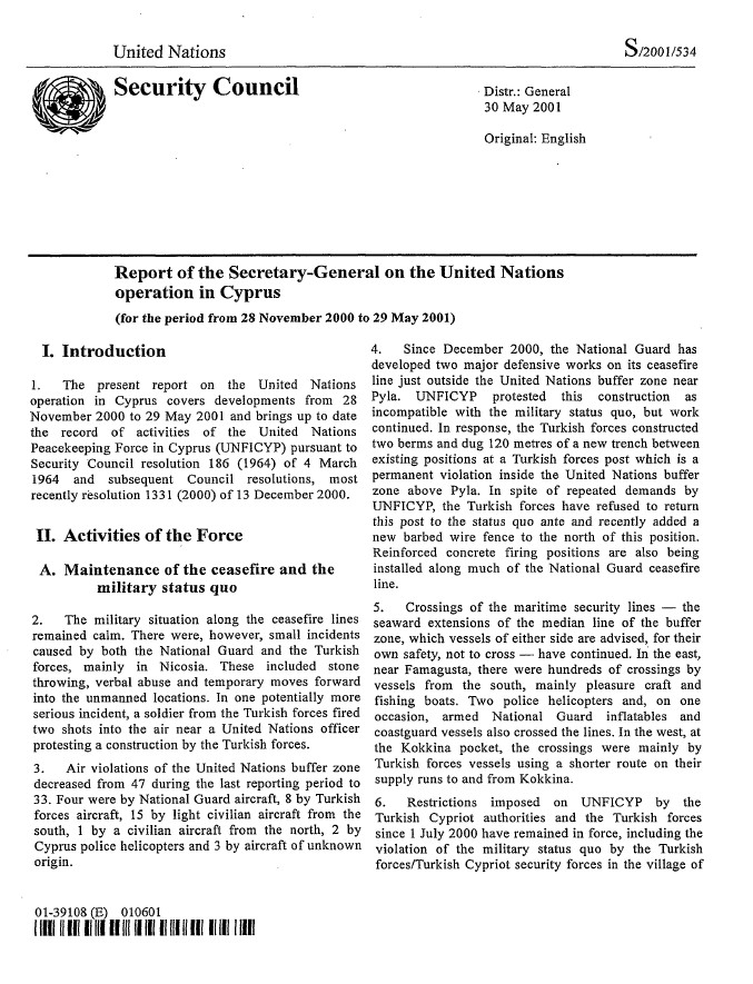 | Yayın Adı | Report of the Secretary-General on the United Nations operation in Cyprus (for the period from 28 November 2000 to 29 May 2001) |