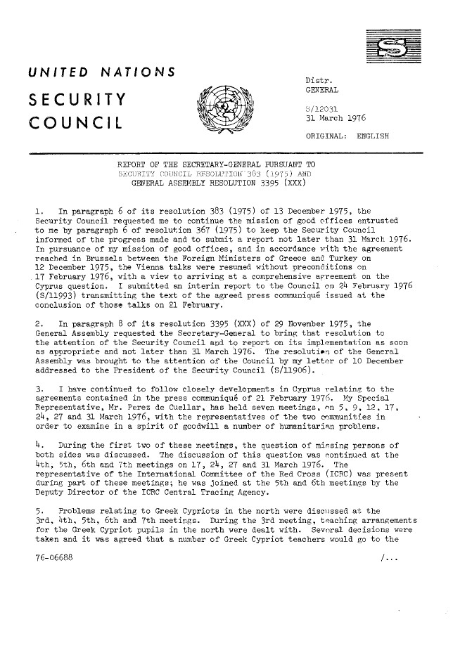 | Yayın Adı | Report of the Secretary-General pursuant to Security Council resolution 383 (1975) and General Assembly resolution 3395 (XXX) |