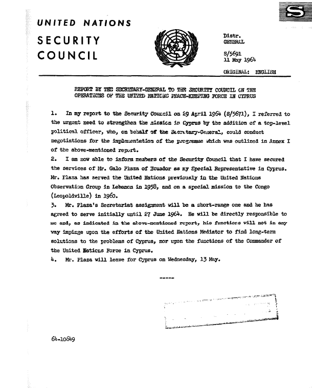 | Yayın Adı | Report on the organization and operation of the United Nations Peacekeeping Force in Cyprus |