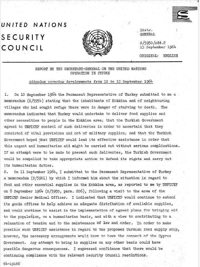 | Yayın Adı | Report on the United Nations Operation in Cyprus : addendum covering the developments from 10 to 15 September 1964 |