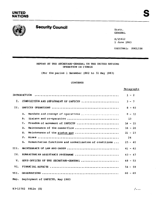 | Yayın Adı | Report on the United Nations operation in Cyprus, for the period 1 December 1982 to 31 May 1983 |