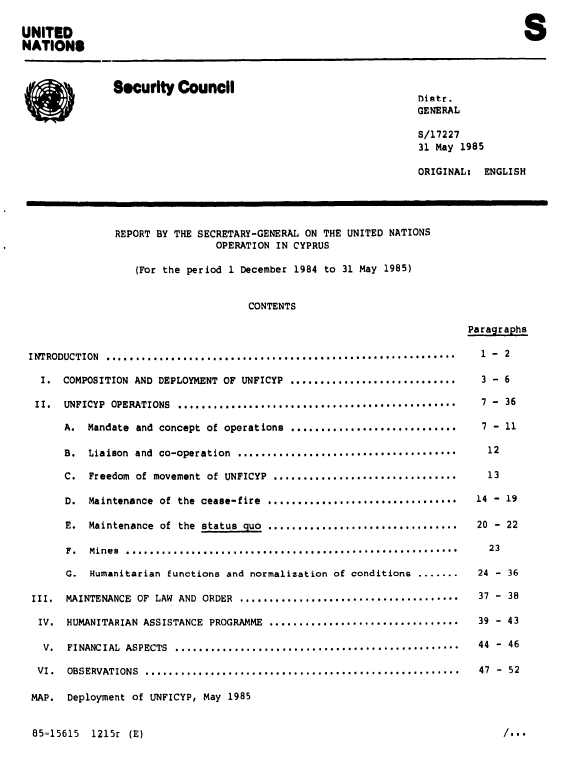 | Yayın Adı | Report on the United Nations operation in Cyprus for the period 1 December 1984 to 31 May 1985 |