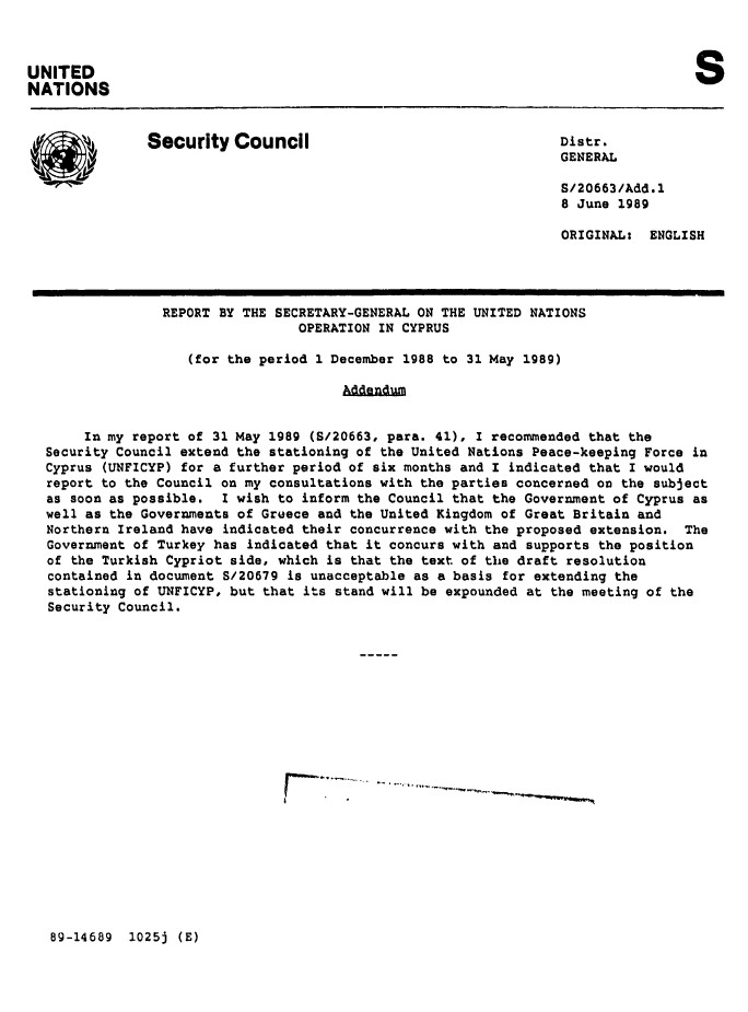 | Yayın Adı | Report on the United Nations Operation in Cyprus for the period 1 December 1988 to 31 May 1989 / by the Secretary-General |