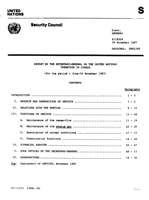 | Yayın Adı | Report on the United Nations operation in Cyprus for the period 1 June-30 November 1987 |