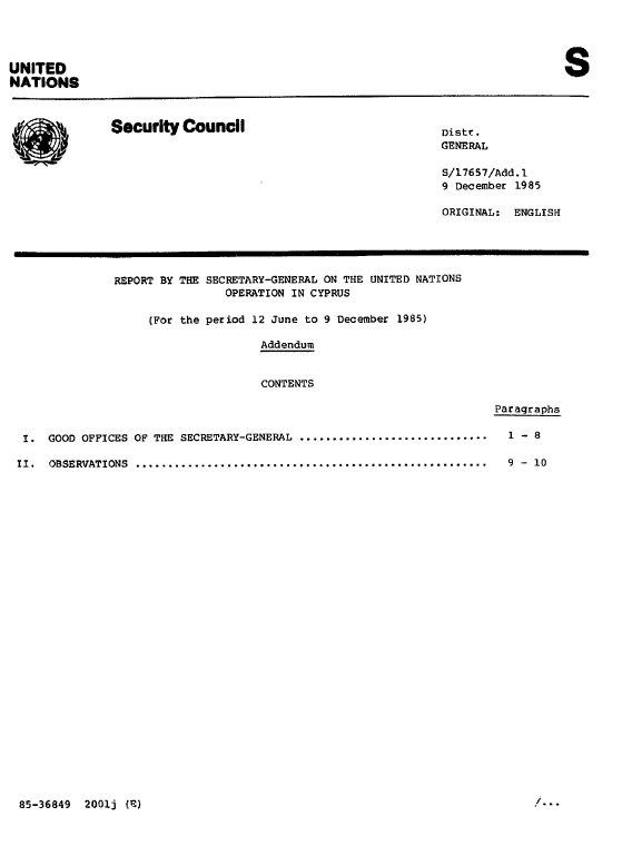 | Yayın Adı | Report on the United Nations operation in Cyprus for the period 12 June to 9 December 1985 |