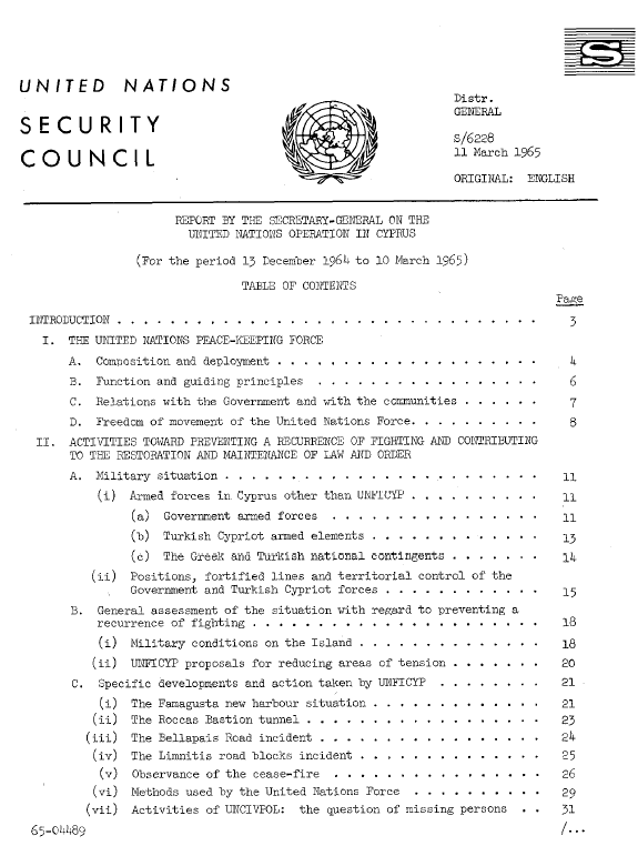 | Yayın Adı | Report on the United Nations Operation in Cyprus (for the period 13 December 1964 to 10 March 1965) |