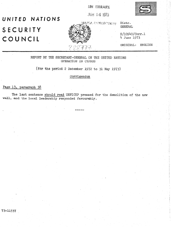 | Yayın Adı | Report on the United Nations operation in Cyprus, for the period 2 December 1972 to 31 May 1973 : corrigendum / by the Secretary-General |