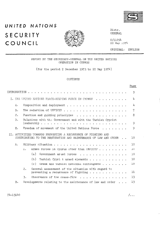| Yayın Adı | Report on the United Nations operation in Cyprus : (for the period 2 December 1973 to 22 May 1974) / by the Secretary-General |