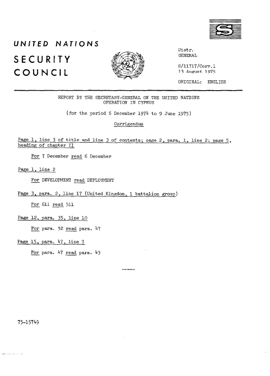 | Yayın Adı | Report on the United Nations Operation in Cyprus for the period 7 December 1974 to 9 June 1975 : corrigendum |