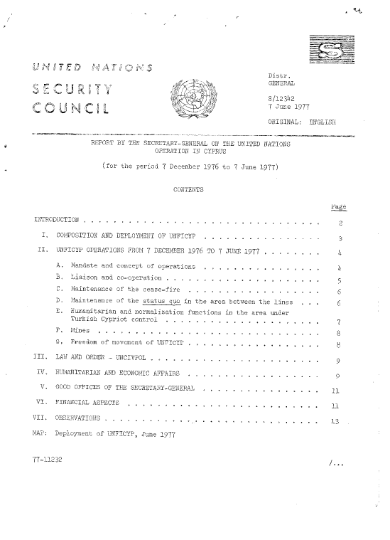 | Yayın Adı | Report on the United Nations operation in Cyprus (for the period 7 December 1976 to 7 June 1977) |