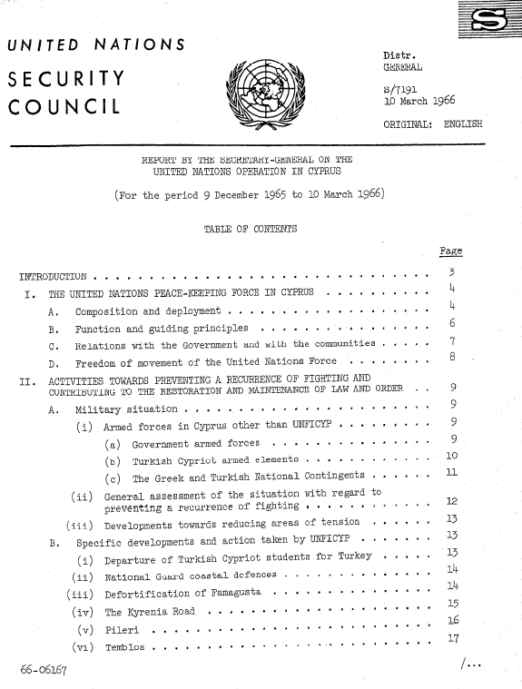 | Yayın Adı | Report on the United Nations Operation in Cyprus : (for the period 9 December 1965 to 10 March 1966) / by the Secretary-General |