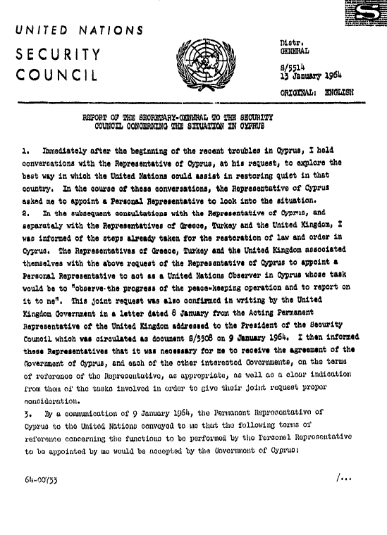 | Yayın Adı | Report to the Security Council concerning the situation in Cyprus |