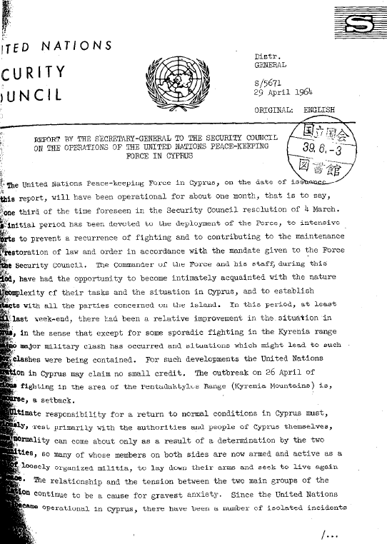 | Yayın Adı | Report to the Security Council on the operations of the United Nations Peace-Keeping Force in Cyprus |