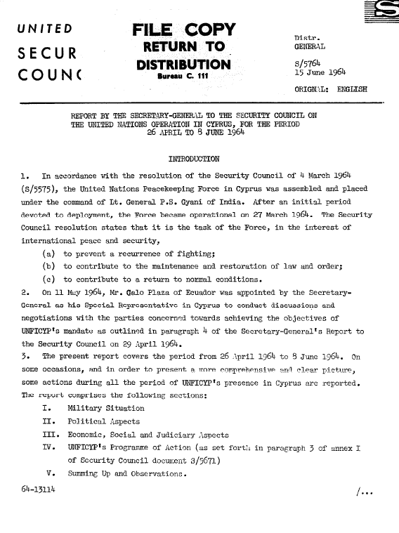 | Yayın Adı | Report to the Security Council on the United Nations Operation in Cyprus, for the period 26 April to 8 June 1964 |