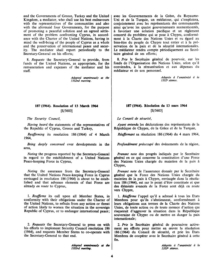 | Yayın Adı | Resolution 187 (1964) / [adopted by the Security Council at its 1103rd meeting], of 13 March 1964: Security Council resolution 187 (1964) [on implementation of resolution 186 (1964) on the Cyprus question] |
