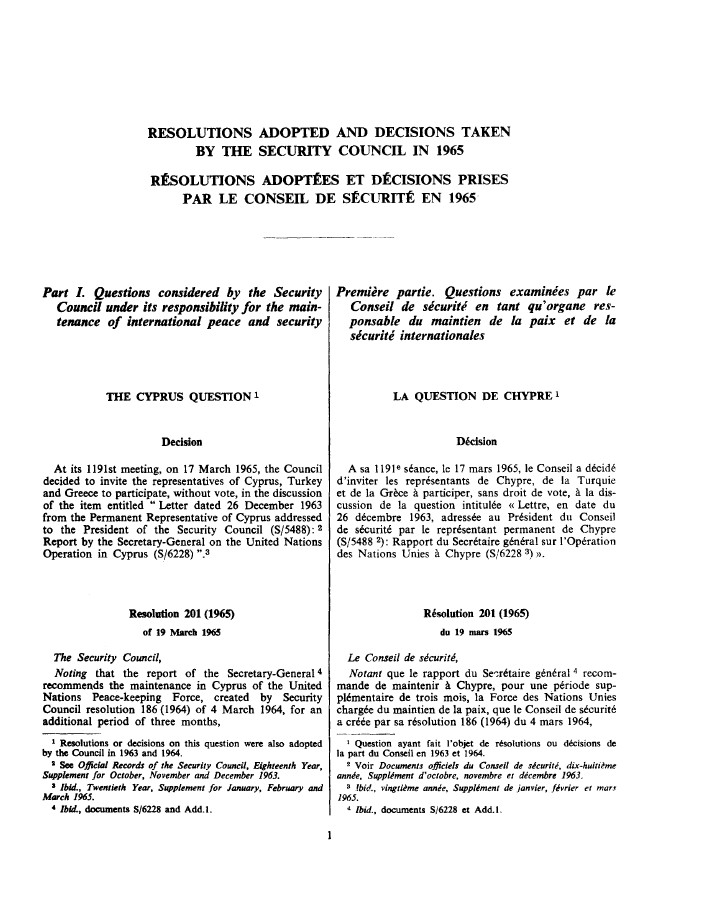| Yayın Adı | Resolution 201 (1965) / [adopted by the Security Council at its 1193rd meeting], of 19 March 1965: Security Council resolution 201 (1965) [on extension of the stationing in Cyprus of the UN Peace-keeping Force] |