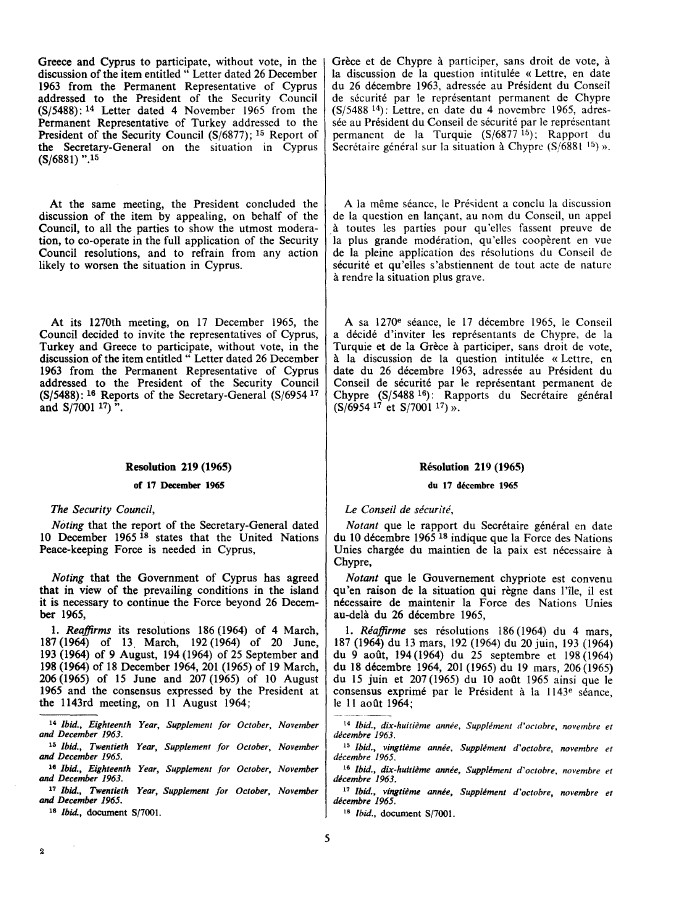| Yayın Adı | Resolution 219 (1965) / [adopted by the Security Council at its 1270th meeting], of 17 December 1965: Security Council resolution 219 (1965) [on extension of the stationing in Cyprus of the UN Peace-keeping Force] |