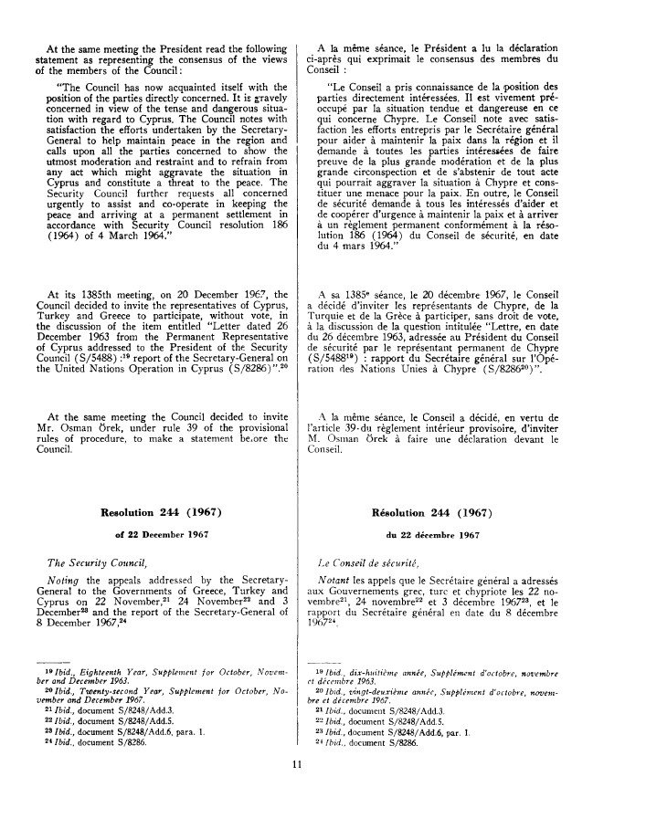 | Yayın Adı | Resolution 244 (1967) / [adopted by the Security Council at its 1386th meeting], of 22 December 1967: Security Council resolution 244 (1967) [on extension of the stationing in Cyprus of the UN Peace-keeping Force] |