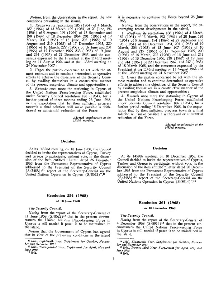 | Yayın Adı | Resolution 261 (1968) / [adopted at the Security Council at its 1459th meeting], of 10 December 1968: Security Council resolution 261 (1968) [on extension of the stationing in Cyprus of the UN Peace-keeping Force] |