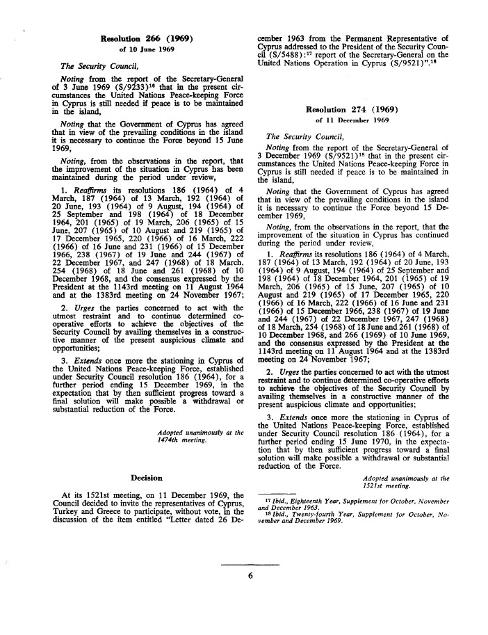 | Yayın Adı | Resolution 274 (1969) / [adopted by the Security Council at its 1521st meeting], of 11 December 1969: Security Council resolution 274 (1969) [on extension of the stationing in Cyprus of the UN Peace-keeping Force] |