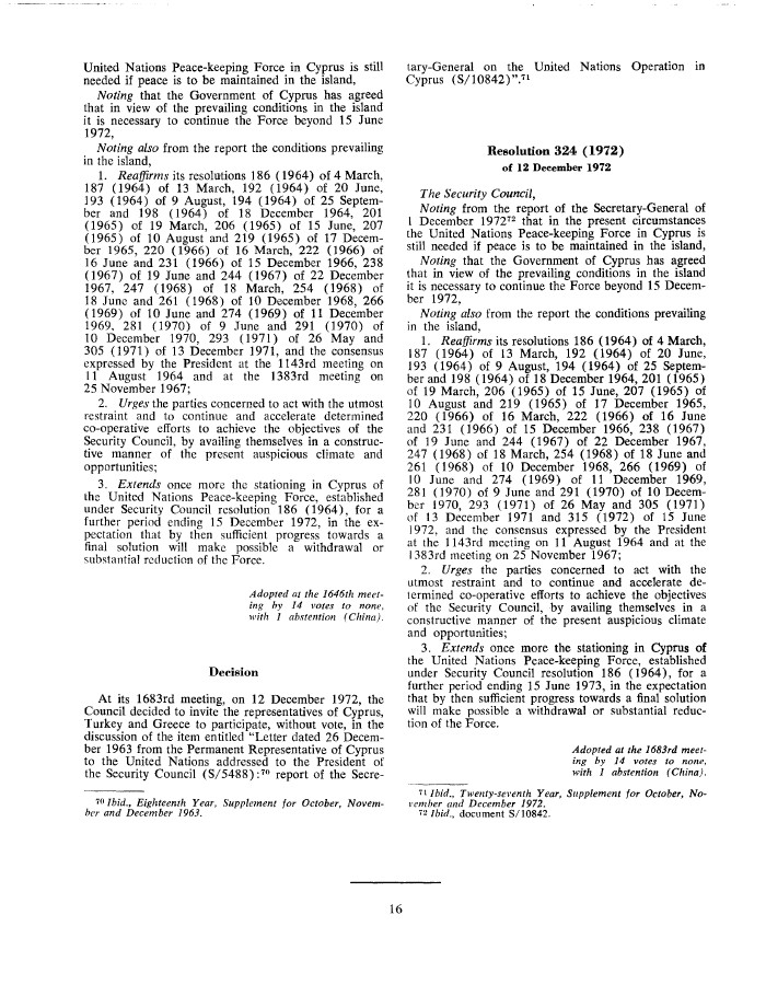 | Yayın Adı | Resolution 324 (1972) / [adopted by the Security Council at its 1683rd meeting], of 12 December 1972: Security Council resolution 324 (1972) [on extension of the stationing in Cyprus of the UN Peace-keeping Force] |