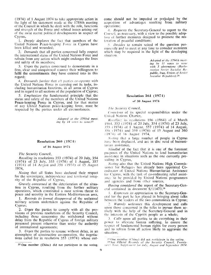 | Yayın Adı | Resolution 361 (1974) / [adopted by the Security Council at its 1795th meeting], of 30 August 1974: Security Council resolution 361 (1974) [on emergency UN humanitarian assistance to Cyprus] |