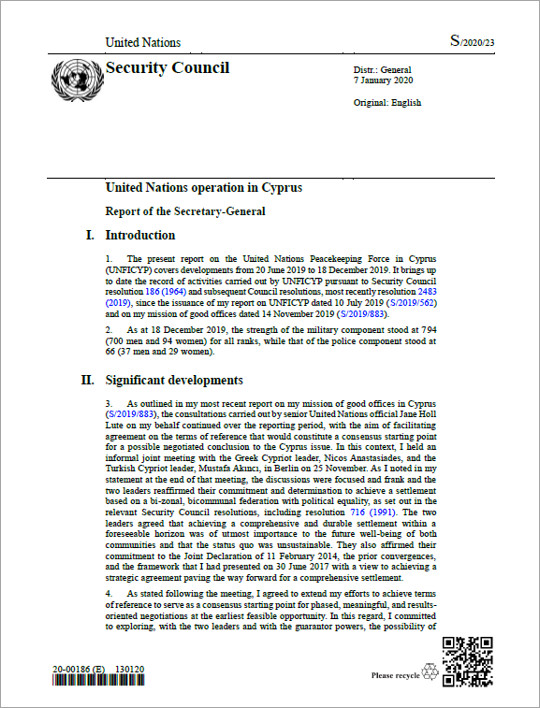 | Yayın Adı | United Nations operation in Cyprus: Report of the Secretary-General |