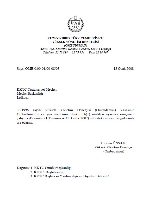 | Yayın Adı | Yüksek Yönetim Denetçisi (Ombudsman) Temmuz-Aralık 2007 XIII. Dönemi Raporu |