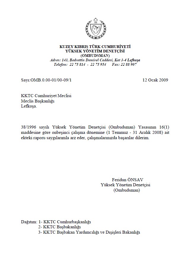 | Yayın Adı | Yüksek Yönetim Denetçisi (Ombudsman) Temmuz-Aralık 2008 XV. Dönemi Raporu |