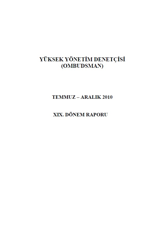 | Yayın Adı | Yüksek Yönetim Denetçisi (Ombudsman) Temmuz-Aralık 2010 XIX. Dönemi Raporu |