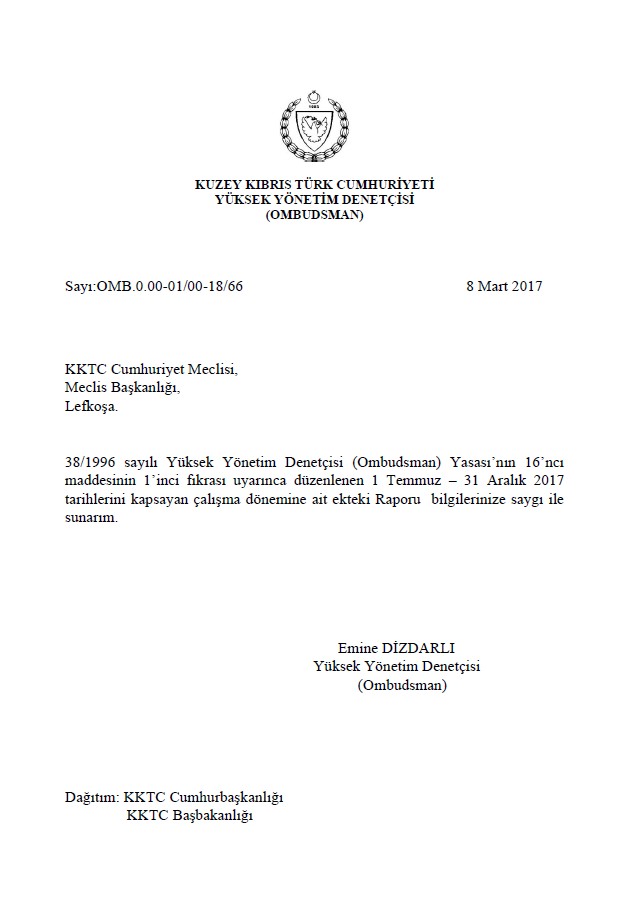 | Yayın Adı | Yüksek Yönetim Denetçisi (Ombudsman) Temmuz-Aralık 2017 XXVI. Dönemi Raporu |
